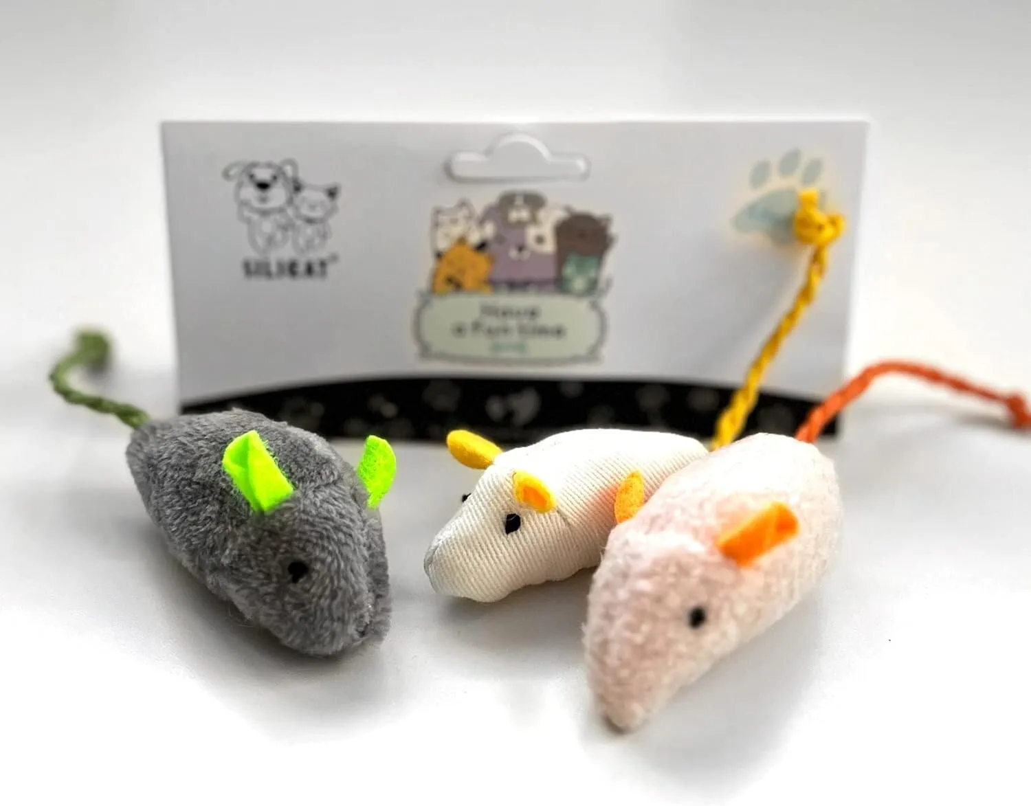 ENTICES CATS: Perfectly sized, lightweight magic toys that cats can easily pick up, carry, and play with. A set of three mice has the following colors: gray, white, pink. These fake mice will help your cat and kitten maintain excellent dental health as well as treat their teeth, teething