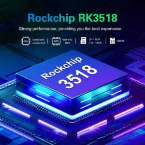 - Powerful quad-core processor: RK3518 64-bit Cortex-A53 CPU with Mali-450 MP2 GPU for smooth UI and playback.
